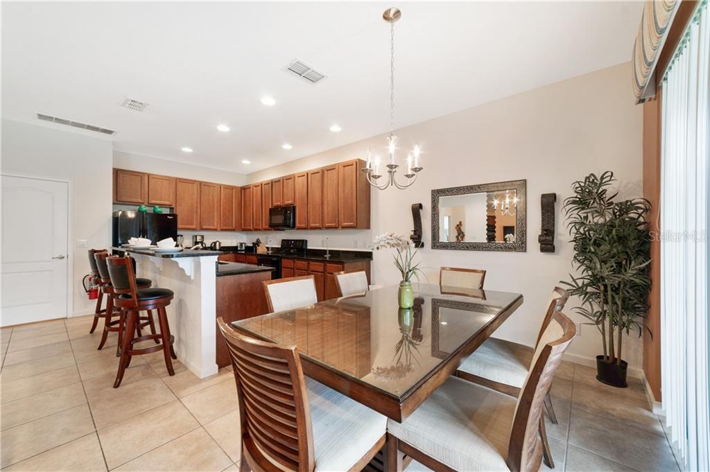 Beautiful fully furnished resort vacation pool home for immediate purchase. 6 large bedrooms and 5 baths. Turnkey ready with the great floor plan Coconut Palm by Park Square Homes. Great loft upstairs with game/media room & theme rooms. Granite kitchen/bathroom countertops, all kitchen appliances, laundry room, screened covered heated pool, covered lanai, and southwest facing pool. Professionally decorated furniture package including leather furniture. Gated entrances. The HOA fully maintains the lawns, common areas and kid-friendly areas. The clubhouse features a resort-style pool & lounge complex and a full exercise room/gym. Large pool with slides, tennis courts and pool cabanas. 15 minutes from Disney. Perfect for income generating short-term rental vacationers seeking what you will have – a secure, family-friendly resort experience. It can be your primary residence or your indulgent vacation home.